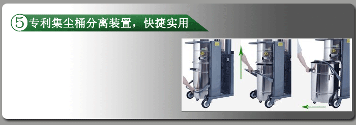 類型:單相工業吸塵器 系列:V3J/V3JS系列 適用工況:適用于空間范圍比較小,要求移動靈活,風量可變的工作區域; 適用于金屬打磨,拋光、激光打標、粉體灌裝等場所的除塵; 適用于食品加工,化工建材、管道清理等場所粉塵吸收;